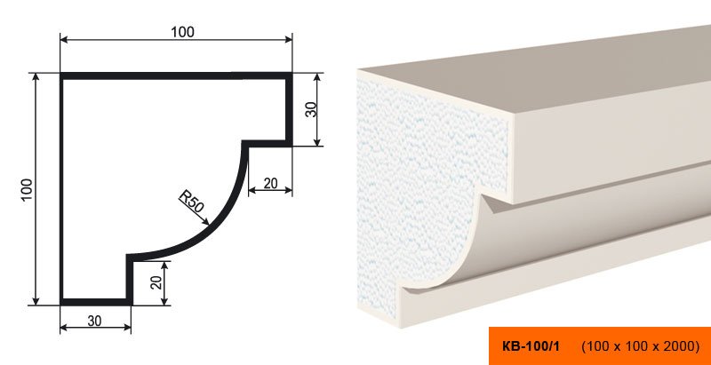 Карнизы, , Карниз фасадный LEPNINAPLAST КВ-100/1, 2000*100*100 мм.