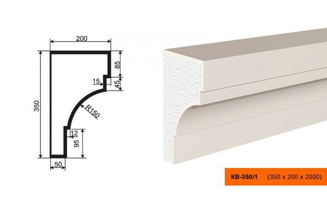 Карниз фасадный LEPNINAPLAST КВ-350/1, 2000*200*350 мм