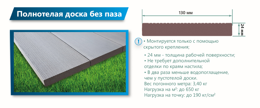 Доска террасная Террапол СМАРТ Кантри полнотелая без паза